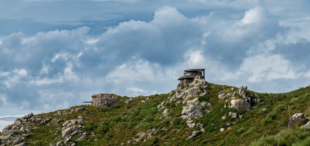 Andere fahren noch weiter hinauf. Direkt über uns macht die Straße eine scharfe Kehre und führt hinauf zur Batería Militar de Cabo Silleiro. Die alte Artilleriestellung aus den 1940er-Jahren mit ihren fünf Geschützbunkern und den verfallenen Unterkünften ist heute ein Lost Place. Sie wurde Ende des letzten Jahrhunderts endgültig aufgegeben, ist aber heute ein Anziehungspunkt für Schaulustige und Geschichtsinteressierte.